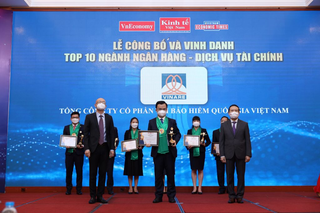 VINARE đã rất tự hào được vinh danh Top 10 ngành Ngân hàng – Dịch vụ tài chính. Trải qua 27 năm phát triển, VINARE đã đạt được nhiều thành tích xuất sắc trong hoạt động kinh doanh và vinh dự được tặng thưởng nhiều phần thưởng cao quý của Nhà nước, Chính phủ và Bộ Tài chính. VINARE đã trở thành công ty tái bảo hiểm hàng đầu trên thị trường Việt Nam với vị thế tài chính vững mạnh, có mối quan hệ hợp tác rộng khắp với thị trường bảo hiểm trong nước, khu vực và quốc tế. VINARE đặt mục tiêu trở thành nhà tái bảo hiểm, nhà đầu tư chuyên nghiệp, uy tín, là chỗ dựa vững chắc cho thị trường bảo hiểm Việt Nam phát triển thông qua tăng cường kết nối thị trường để nâng tầm cao mới tạo đà phát triển bền vững trong tương lai.