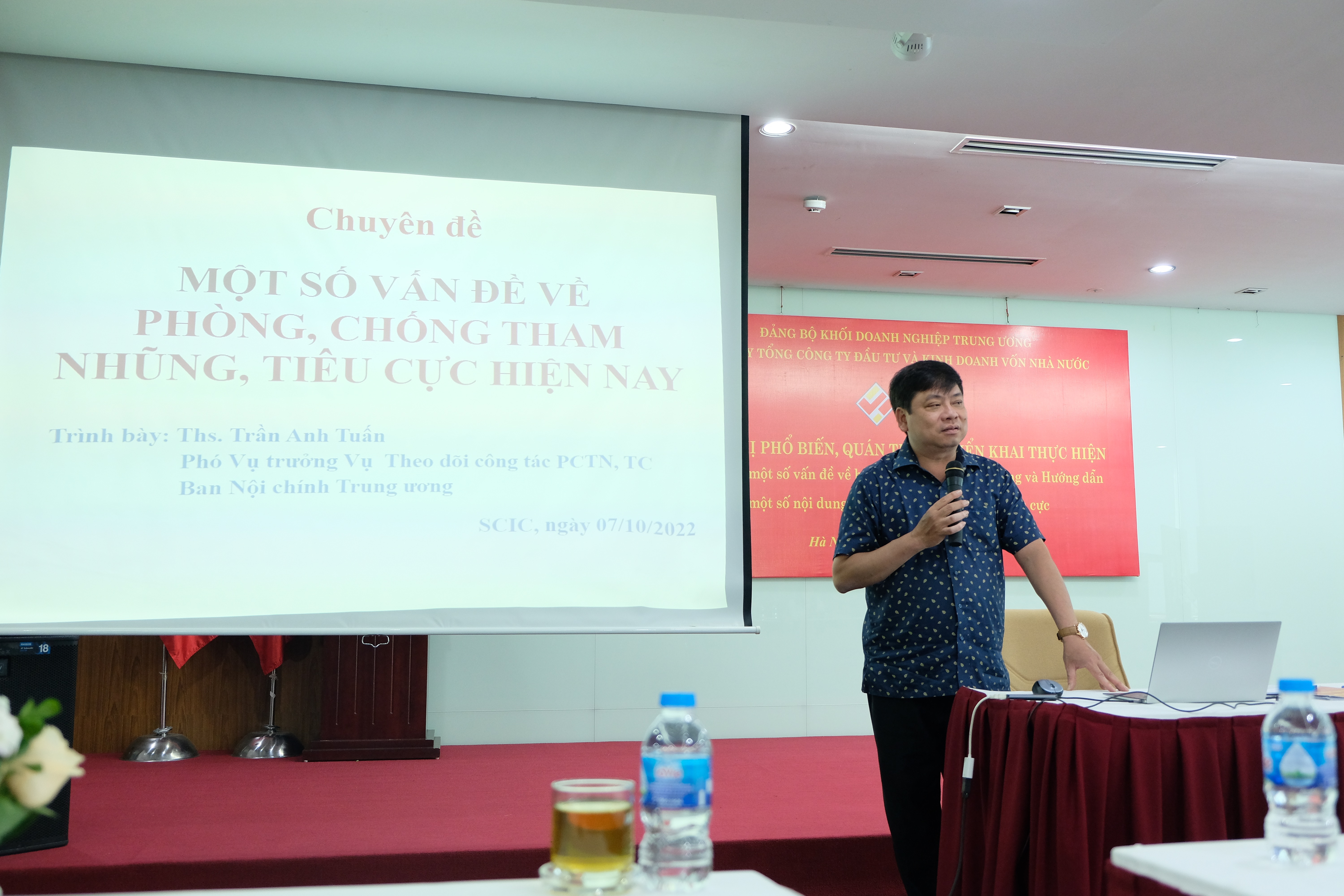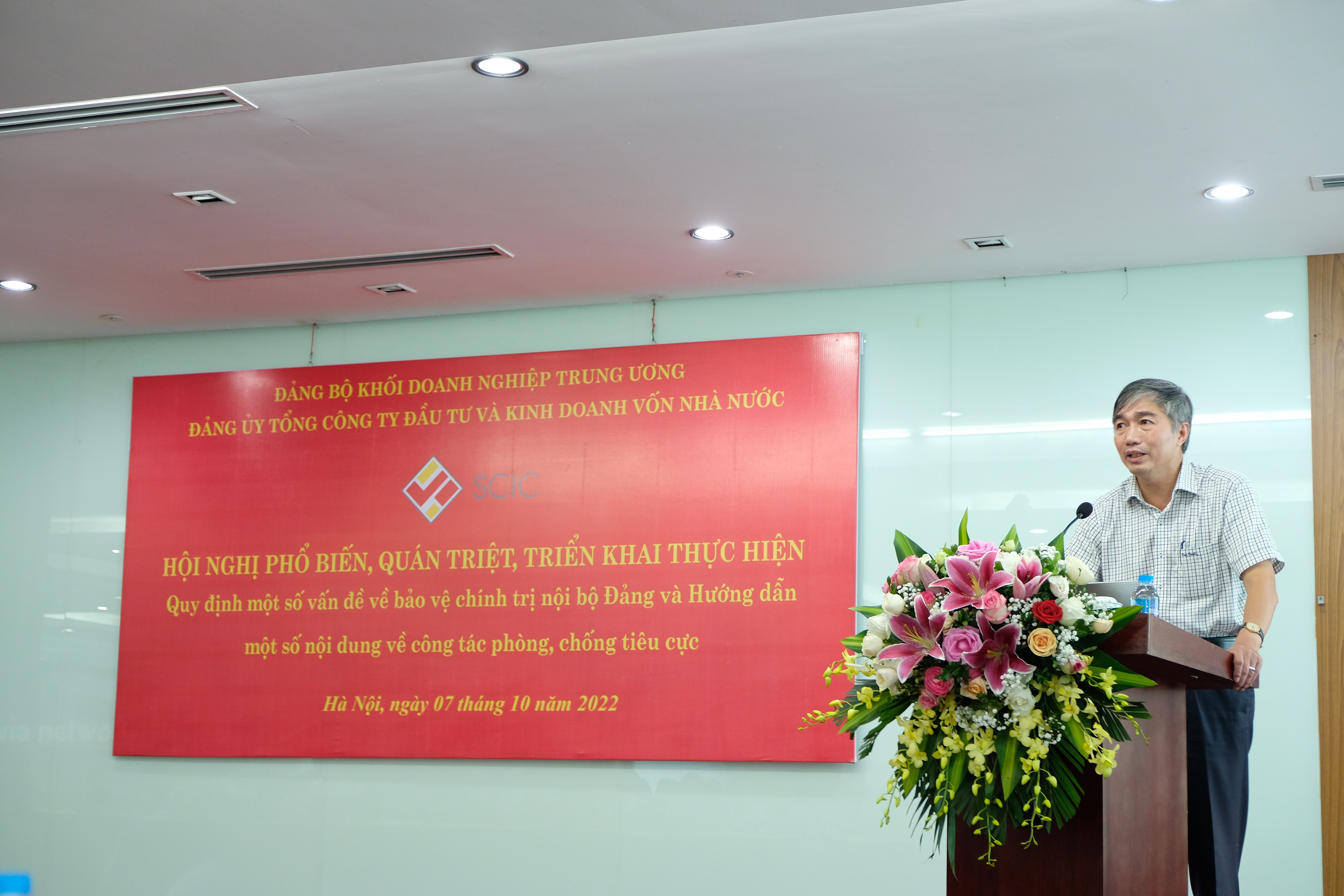 Ngày 7/10, Đảng ủy SCIC tổ chức Hội nghị phổ biến, quán triệt, triển khai thực hiện Quy định một số vấn đề về bảo vệ chính trị nội bộ Đảng và Hướng dẫn một số nội dung về công tác phòng, chống tiêu cực tới toàn thể cán bộ, đảng viên, người lao động của SCIC.