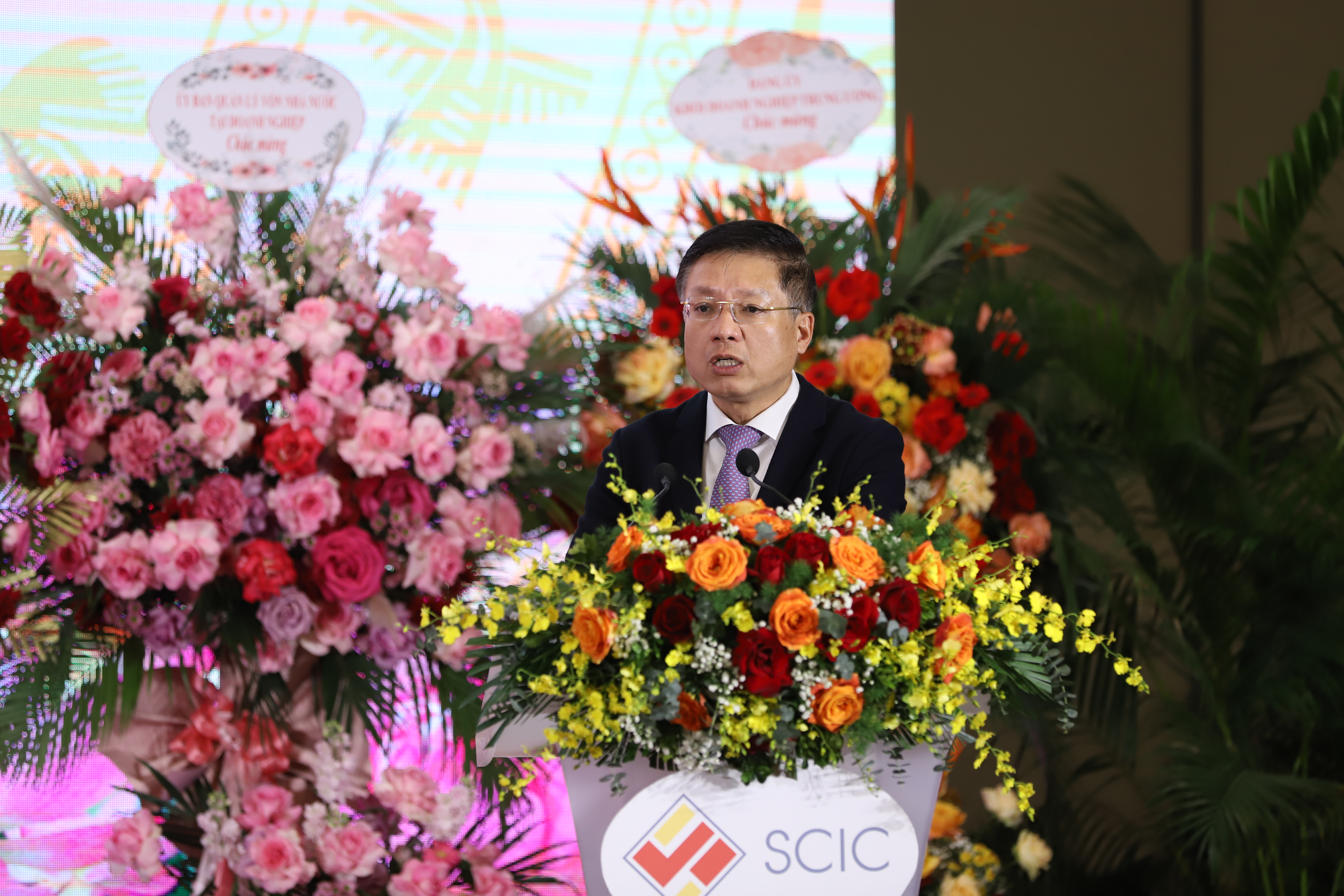 Phát biểu tại buổi lễ, đồng chí Hồ Sỹ Hùng - Phó Bí thư Ban cán sự Đảng, Phó Chủ tịch Uỷ ban Quản lý vốn nhà nước tại doanh nghiệp đánh giá cao những thành tựu của SCIC cùng với 18 Tập đoàn, Tổng công ty thực hiện thắng lợi nhiệm vụ mà Chính phủ giao cho Ủy ban Quản lý vốn nhà nước tại doanh nghiệp. Dù vậy, đồng chí cũng nhận định cần đẩy nhanh tiến trình đổi mới, sắp xếp, tái cơ cấu doanh nghiệp nhà nước, thực hiện vai trò nhà đầu tư của Chính phủ, nhiệm vụ đặt ra của Tổng công ty là rất quan trọng và nặng nề.