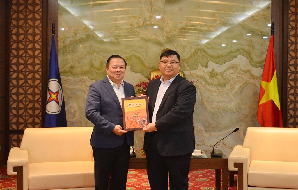 Chủ tịch Ủy ban Quản lý vốn nhà nước tại doanh nghiệp Nguyễn Hoàng Anh và ông Yang Ruo Bing - Bí thư Đảng ủy, Chủ tịch HĐQT trao quà lưu niệm