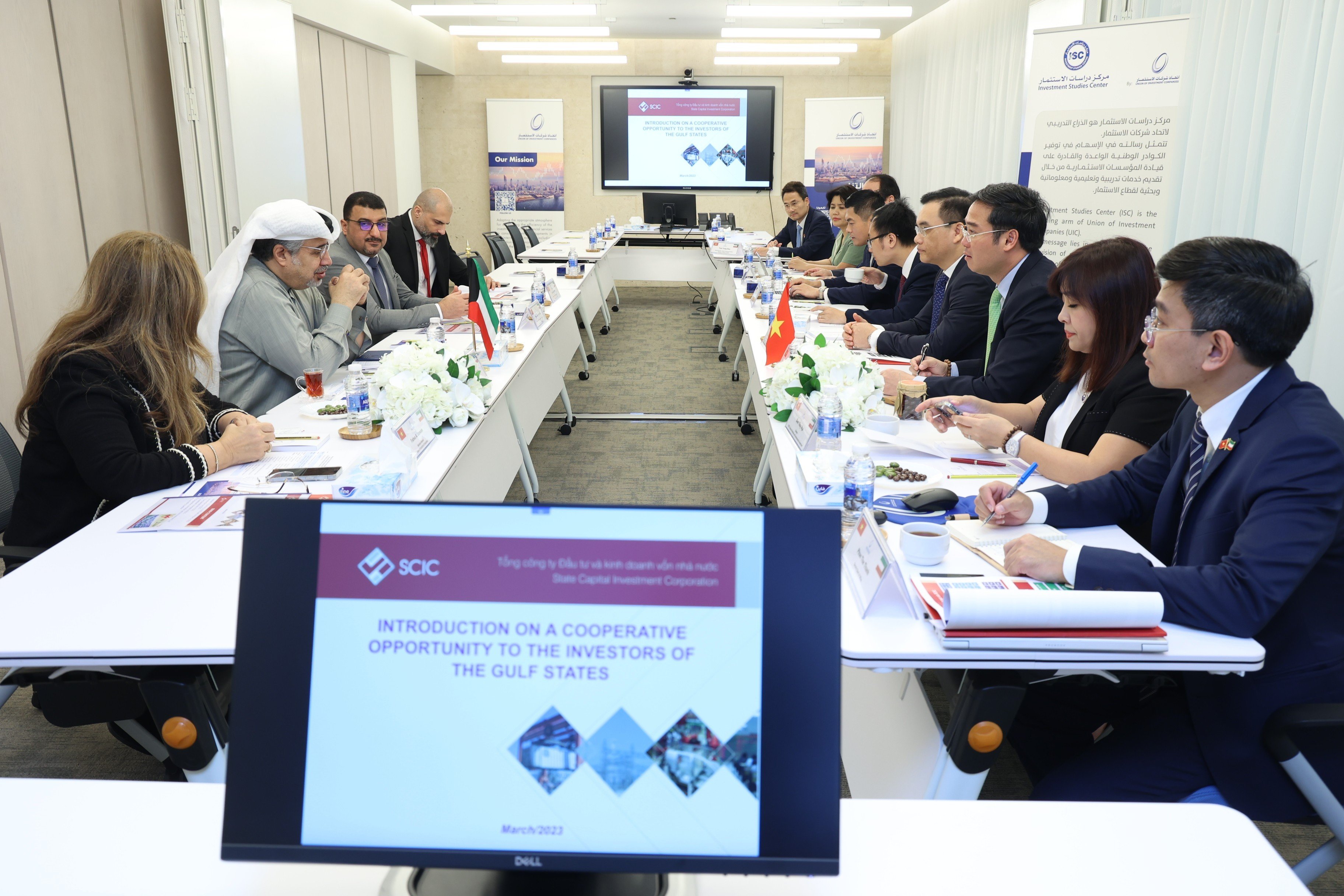 Ngoài ra, đoàn công tác SCIC cũng đã gặp gỡ, tiếp xúc với một số các chuyên gia tài chính, các công ty đầu tư tại địa bàn để tìm hiểu thêm về khẩu vị đầu tư cũng như mức độ quan tâm của các công ty tại Kuwait đối với thị trường Việt Nam. Đoàn công tác đã tiếp xúc với Công ty Đầu tư KIPCO (Kuwait Project Company – KIPCO), được thành lập năm 1975, là công ty holding đầu tư tại khu vực Trung Đông và Bắc Phi, vào các lĩnh vực: dịch vụ tài chính, bất động sản, công nghiệp và truyền thông... Tổng tài sản của KIPCO là 33,4 tỷ USD, với danh mục đầu tư vào hơn 60 doanh nghiệp tại 24 quốc gia. Ngân hàng Đầu tư NBK (NBK Capital), là công ty con thuộc sở hữu của Ngân hàng Quốc gia Kuwait (National Bank of Kuwait)- ngân hàng lớn nhất và được đánh giá cao nhất ở Trung Đông. Ngân hàng Đầu tư NBK hoạt động đầu tư thông qua các Quỹ Đầu tư để đầu tư vào khu vực Trung Đông, châu Á và châu Âu.