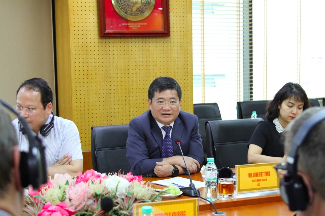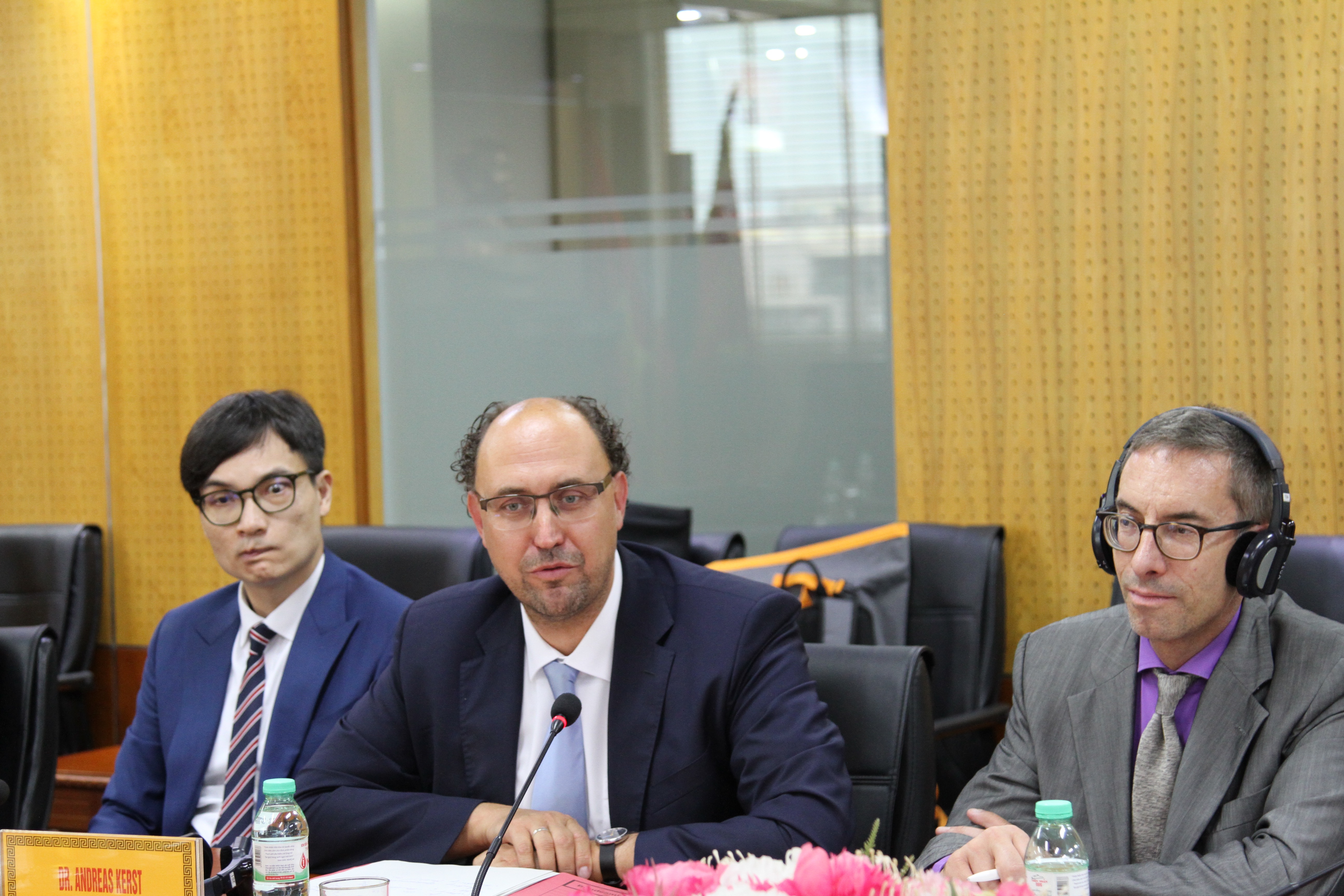 Tiến sĩ Andreas Kerst – Trưởng Ban Chính sách Quản lý cổ phần (Vụ VIII), Bộ Tài chính CHLB Đức trao đổi tại buổi làm việc