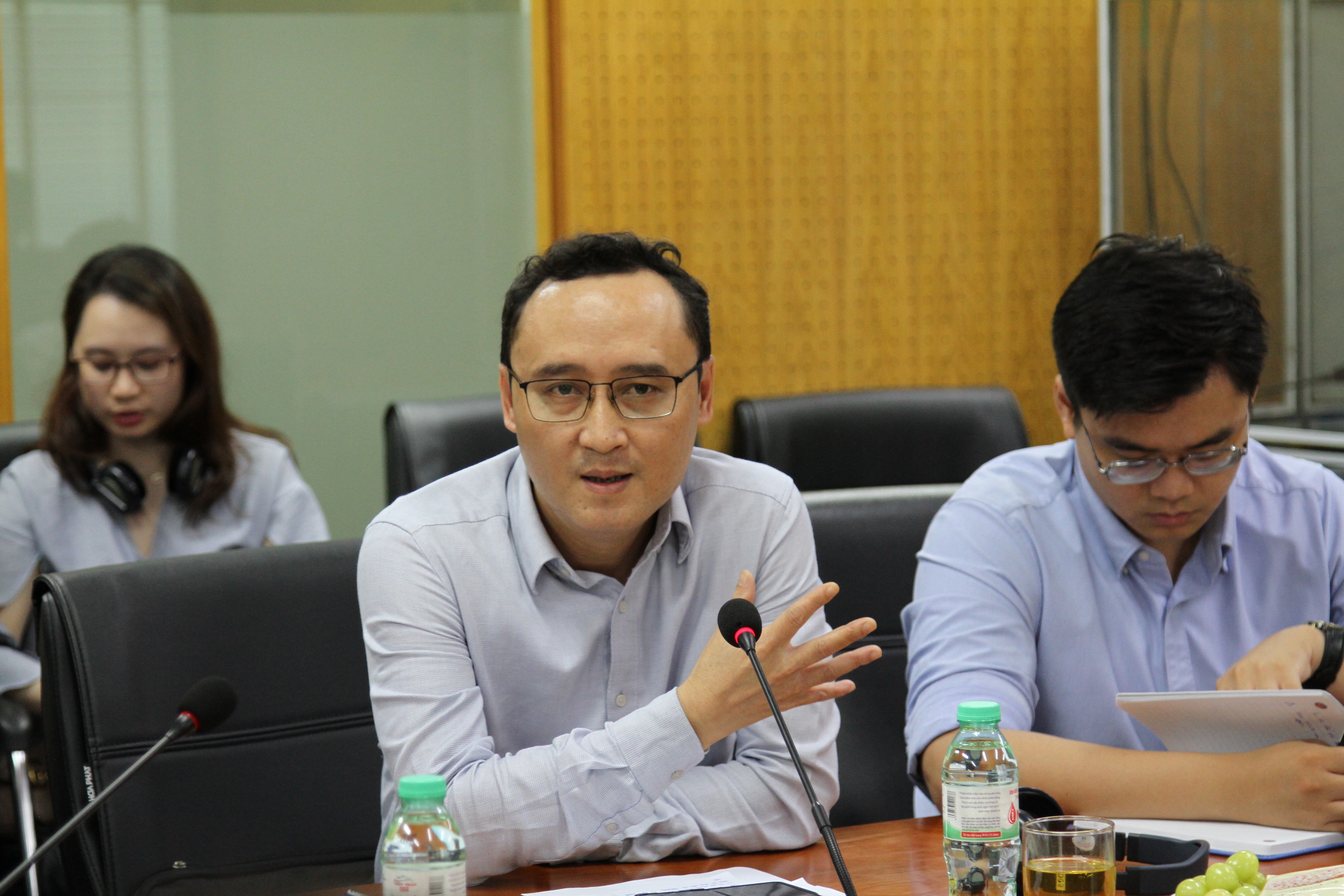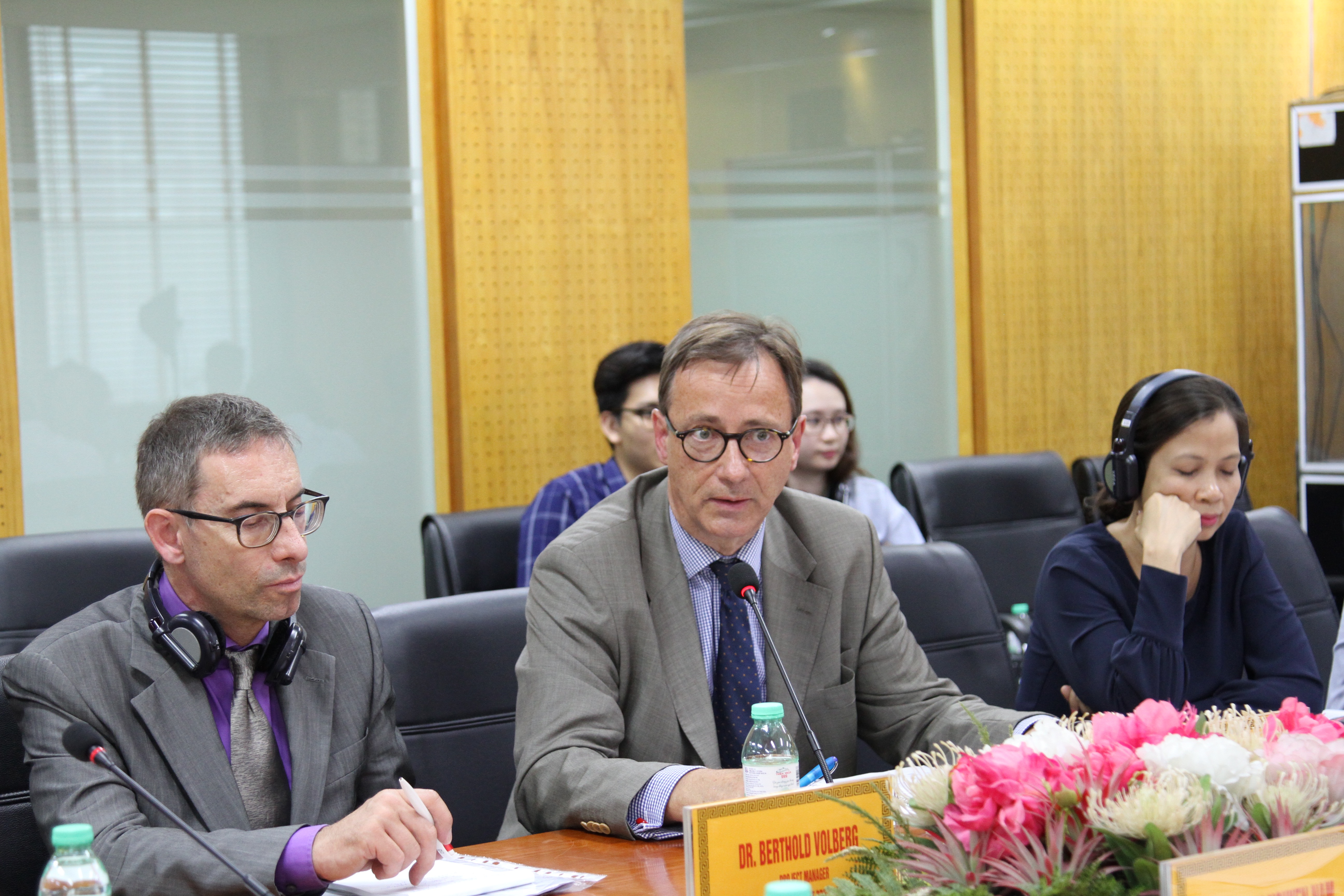 Tiến sĩ Berthold Volberg, chuyên gia cao cấp của Tổ chức GIZ trao đổi tại buổi làm việc