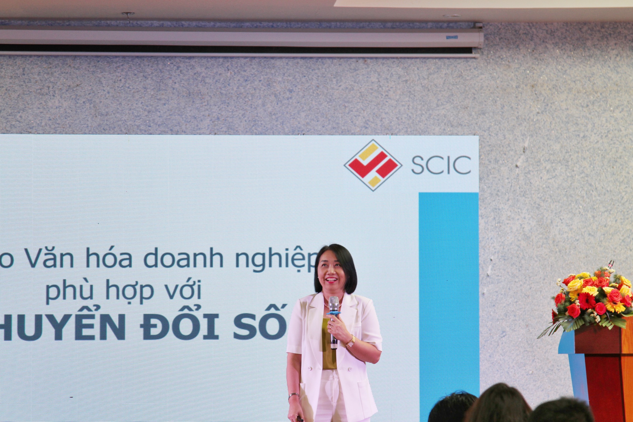 Tại buổi tập huấn, cán bộ nhân viên SCIC cũng đã được nghe Thạc sỹ Nguyễn Thị Huệ, giảng viên Đại học FPT, trình bày về Văn hoá doanh nghiệp phù hợp với chuyển đổi số.