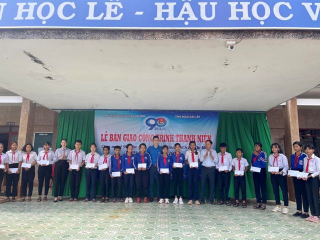 Đại diện SCIC trao tặng tài trợ tại trường THCS Y Ngông Niê Kđăm- tỉnh Đắk Lắk- hưởng ứng Tháng Thanh niên hướng tới kỷ niệm 90 năm ngày thành lập đoàn TNCS Hồ Chí Minh