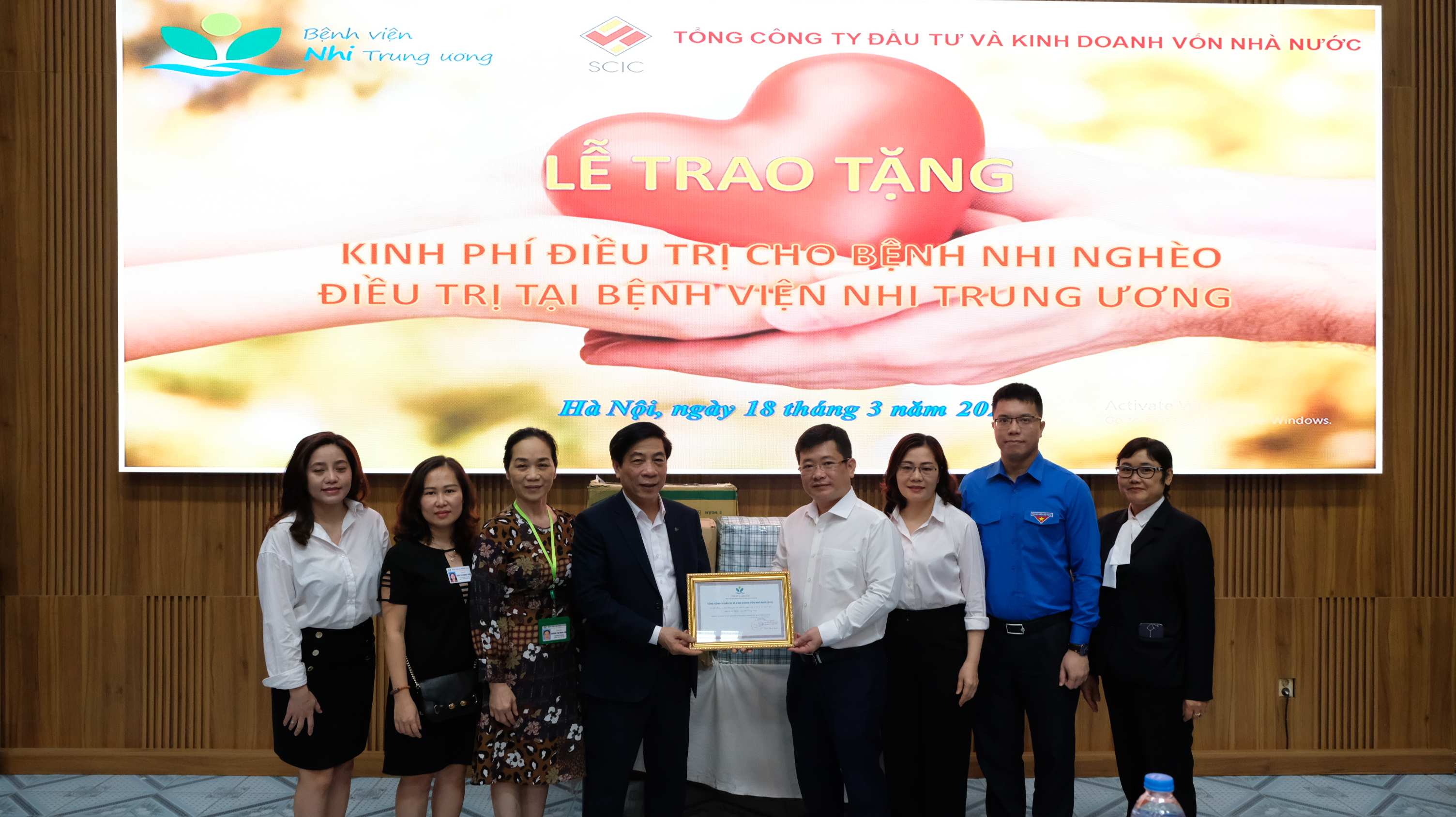 Phó Tổng Giám đốc, Chủ tịch Công đoàn SCIC Đinh Việt Tùng trao tặng Kinh phí điều trị cho bệnh nhi nghèo điều trị tại Bệnh viên Nhi Trung ương