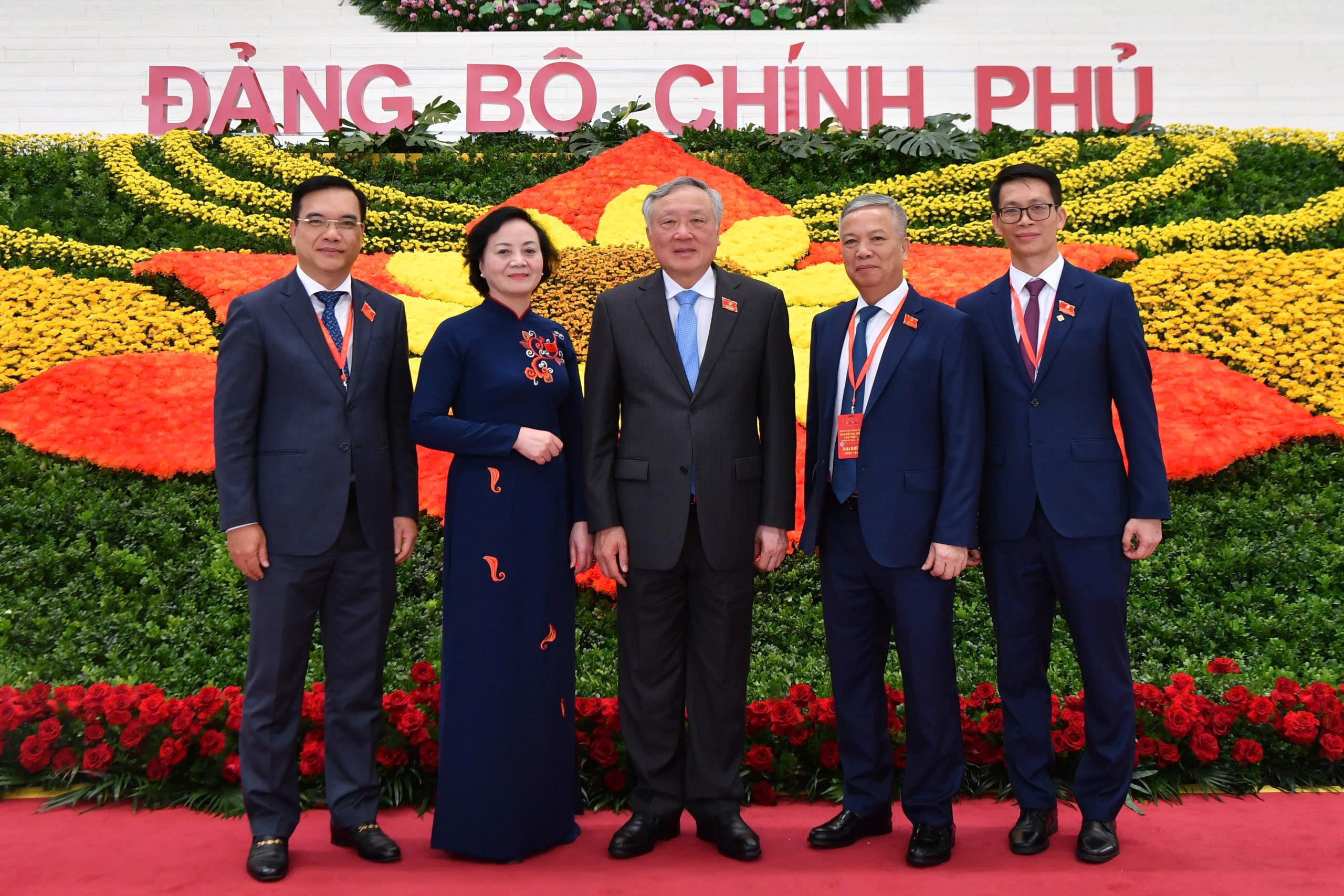 Các đồng chí Ủy viên BCH Đảng bộ Chính phủ nhiệm kỳ 2020-2025 chụp ảnh lưu niệm cùng Lãnh đạo Đảng, Nhà nước và nguyên lãnh đạo Đảng, Nhà nước, Đoàn chủ tịch Đại hội