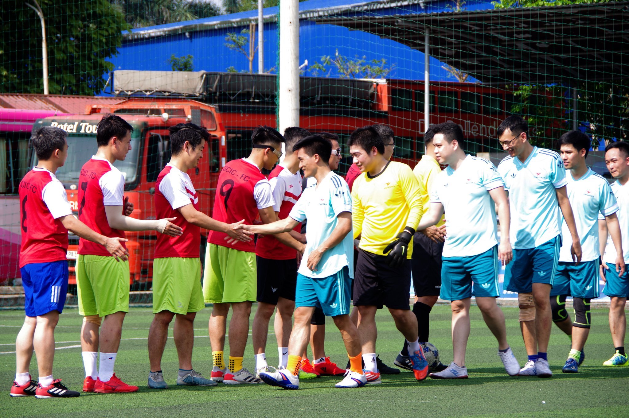 Hình ảnh mở màn giải đấu: đội bóng đá SCIC chào giao hữu đội tuyển Cục Hàng không Việt Nam