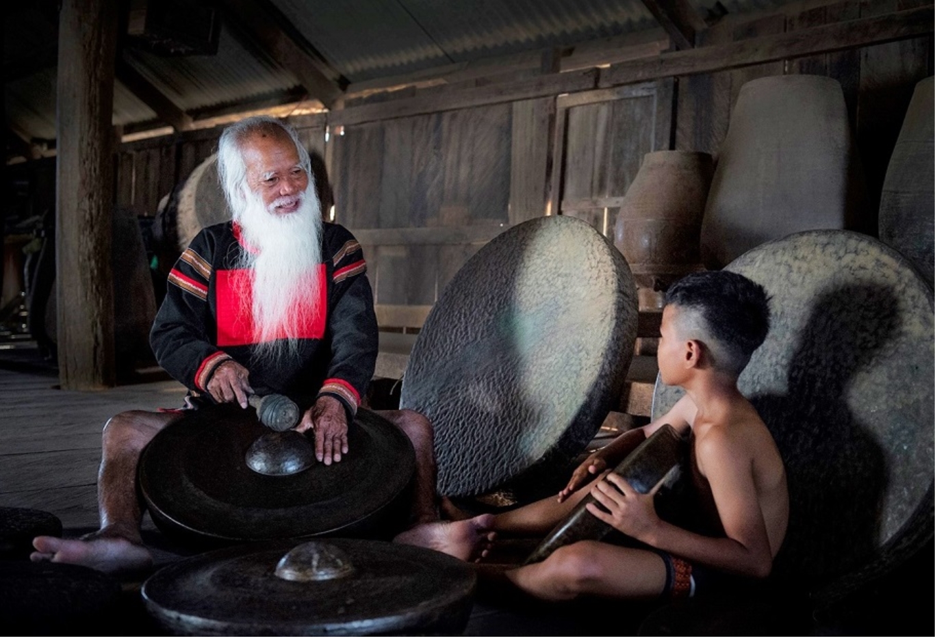 Già làng Ê-đê trao truyền các giá trị văn hóa cho thế hệ sau.