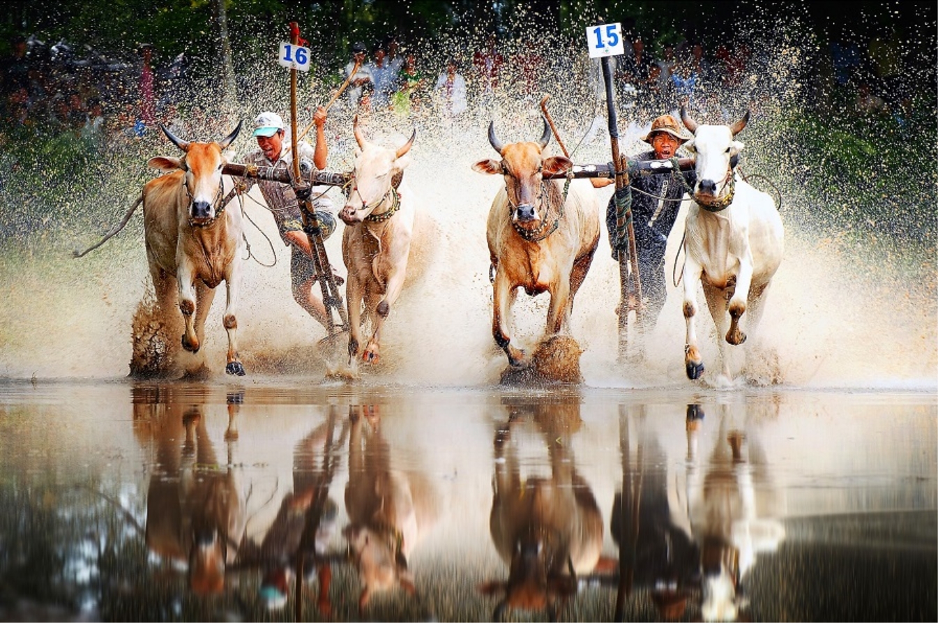 Hội đua bò Bảy Núi của đồng bào Khmer Nam Bộ được tổ chức vào dịp lễ Dolta.