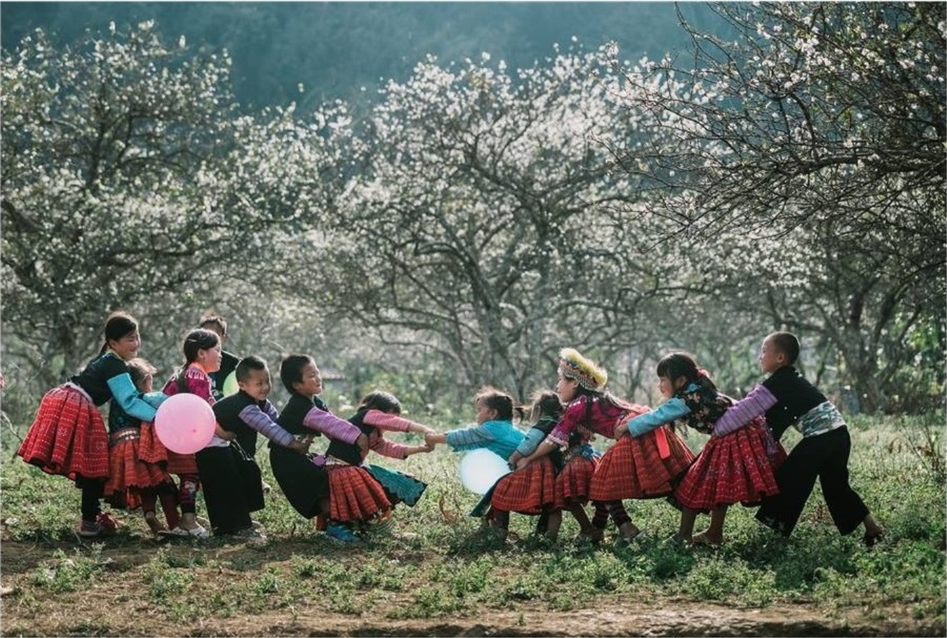 Thiếu nữ đồng bào các dân tộc thiểu số vùng Tây Bắc trong không gian Lễ hội Hoa Ban, tỉnh Điện Biên.