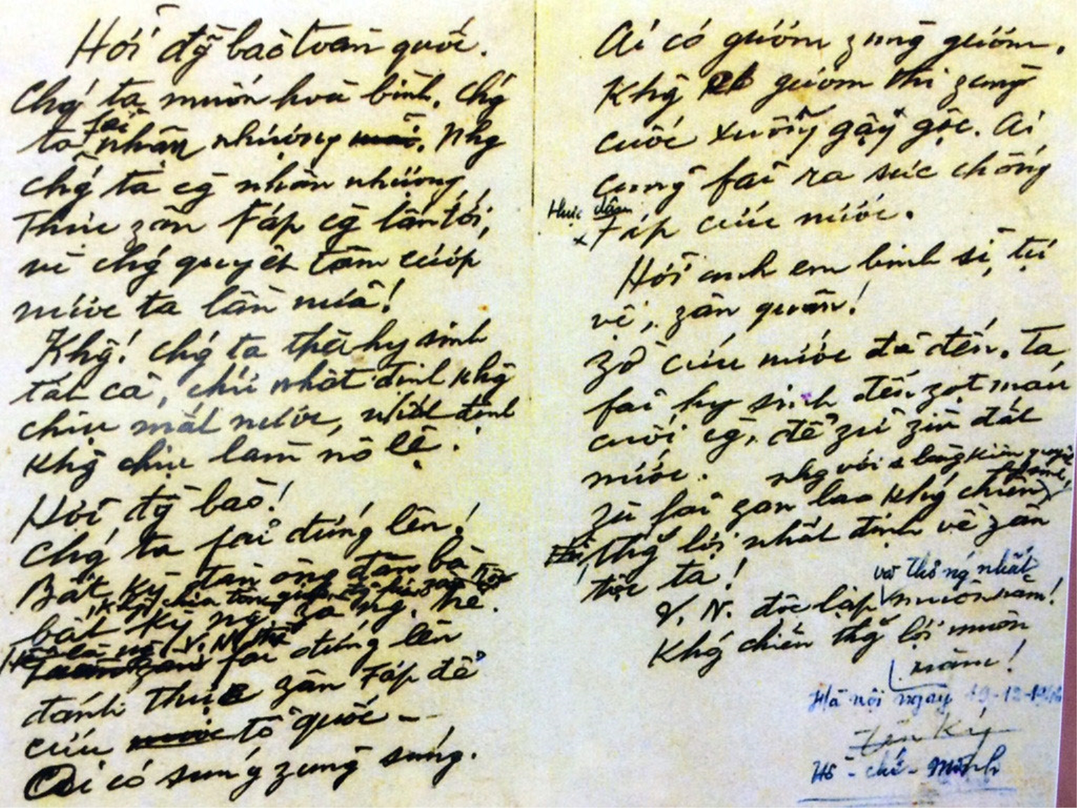 Trải qua quá trình đấu tranh đầy gian khổ, hy sinh, nhân dân Việt Nam mới giành lại độc lập, tự do cho Tổ quốc với thắng lợi Cách mạng tháng Tám và sự ra đời của nước Việt Nam Dân chủ Cộng hòa ngày 2/9/1945; bất chấp nguyện vọng hòa bình, hữu nghị, hợp tác bình đẳng với các nước dân chủ, sự nhân nhượng có nguyên tắc của nhân dân ta, thực dân Pháp ngày càng lấn tới, nhất định cướp nước ta một lần nữa. Đứng trước âm mưu và hành động xâm lược của kẻ thù, nhân dân ta chỉ còn con đường duy nhất để bảo vệ thành quả cách mạng là nhất tề đứng lên kháng chiến. Đây là một cuộc chiến tranh tự vệ, chiến tranh giải phóng, chiến tranh chính nghĩa, là “một cuộc chiến tranh tiến bộ vì tự do độc lập, dân chủ và hòa bình” của dân tộc ta.