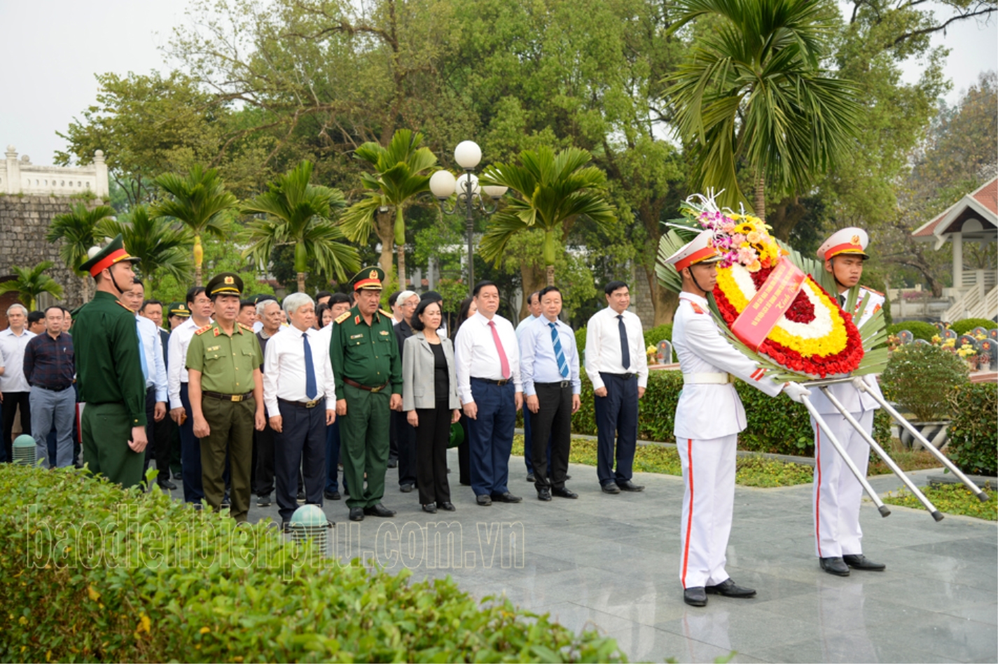 Đồng chí Trương Thị Mai, Ủy viên Bộ Chính trị, Thường trực Ban Bí thư, Trưởng Ban Tổ chức Trung ương và đoàn công tác vào viếng Nghĩa trang Liệt sĩ A1.