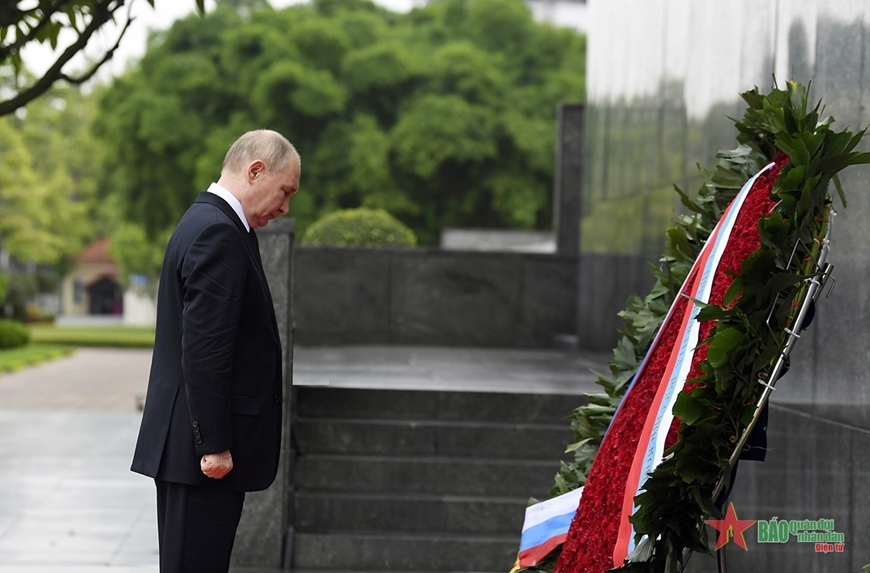 Trong chuyến thăm cấp Nhà nước tới Việt Nam, ngày 20-6-2024, Tổng thống Liên bang Nga Vladimir Putin đã vào Lăng viếng Chủ tịch Hồ Chí Minh. Ảnh: NGÔ VIỆT TRUNG