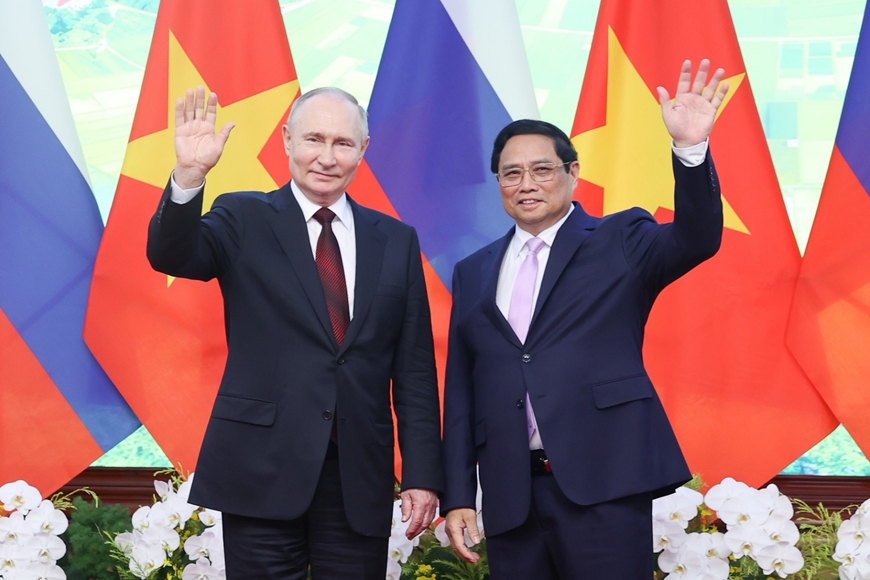 Thủ tướng Chính phủ Phạm Minh Chính và Tổng thống Liên bang Nga Vladimir Putin trong chuyến thăm cấp Nhà nước đến Việt Nam. Ảnh: TRỌNG HẢI