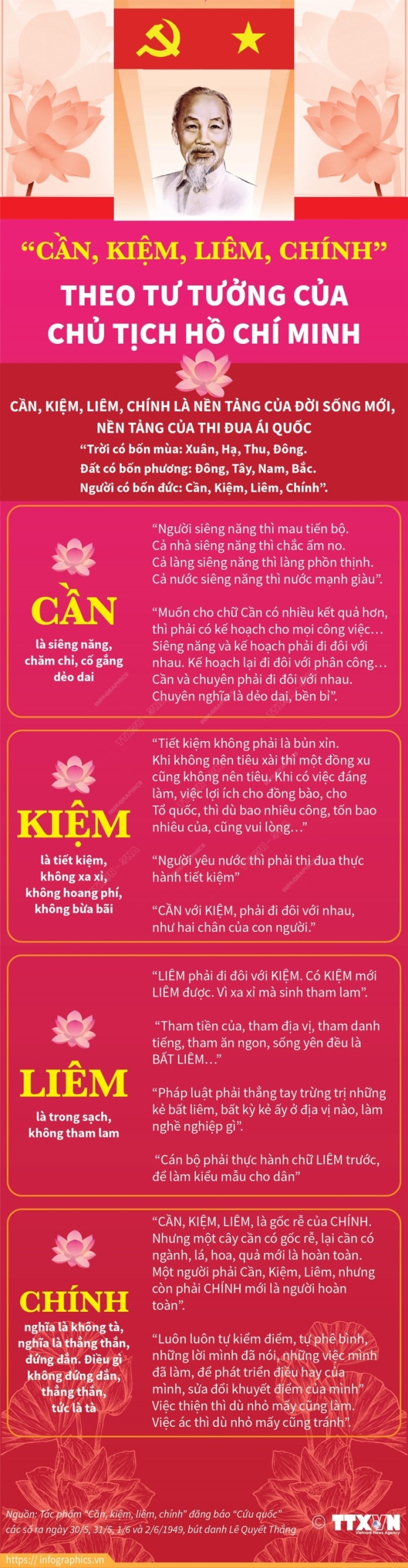 Mọi việc thành hay là bại chủ chốt là do cán bộ có thấm nhuần đạo đức cách mạng hay là không”(1). Do đó, Người yêu cầu “Người đảng viên - dù công tác to hay nhỏ, địa vị cao hay thấp - ở đâu cũng phải làm gương mẫu cho quần chúng”, “Phải giữ vững đạo đức cách mạng, chí công vô tư”, “Phải tự mình làm gương mẫu về cần, kiệm, liêm chính để nhân dân noi theo”(2). Soi chiếu với việc Đảng ta ban hành Quy định số 144 cũng như nội dung một số điều trong Quy định, có thể nhận thấy Đảng ta đã có sự vận dụng tư tưởng Hồ Chí Minh về việc cần thiết phải xây dựng đạo đức cách mạng cho cán bộ, đảng viên thông qua những quy định cụ thể. Đặc biệt, Điều 3 với quy định về “Cần, kiệm, liêm, chính, chí công vô tư” chính là sự vận dụng trực tiếp tư tưởng Hồ Chí Minh về những phẩm chất cơ bản về đạo đức cách mạng của cán bộ, đảng viên.